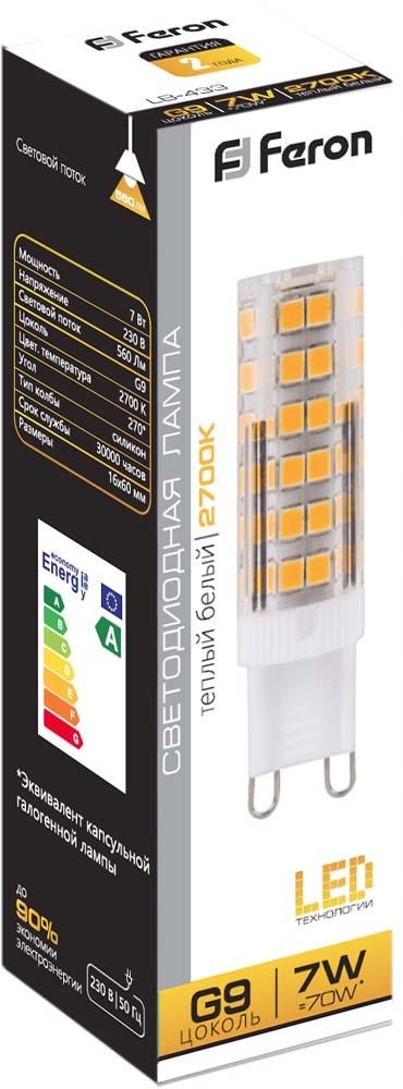 Светодиодная лампа 7W белый теплый свет G9 25766 LB-433 Feron