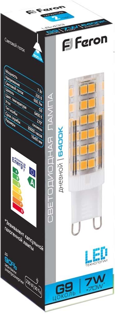 Светодиодная лампа 7W дневной свет G9 25768 LB-433 Feron