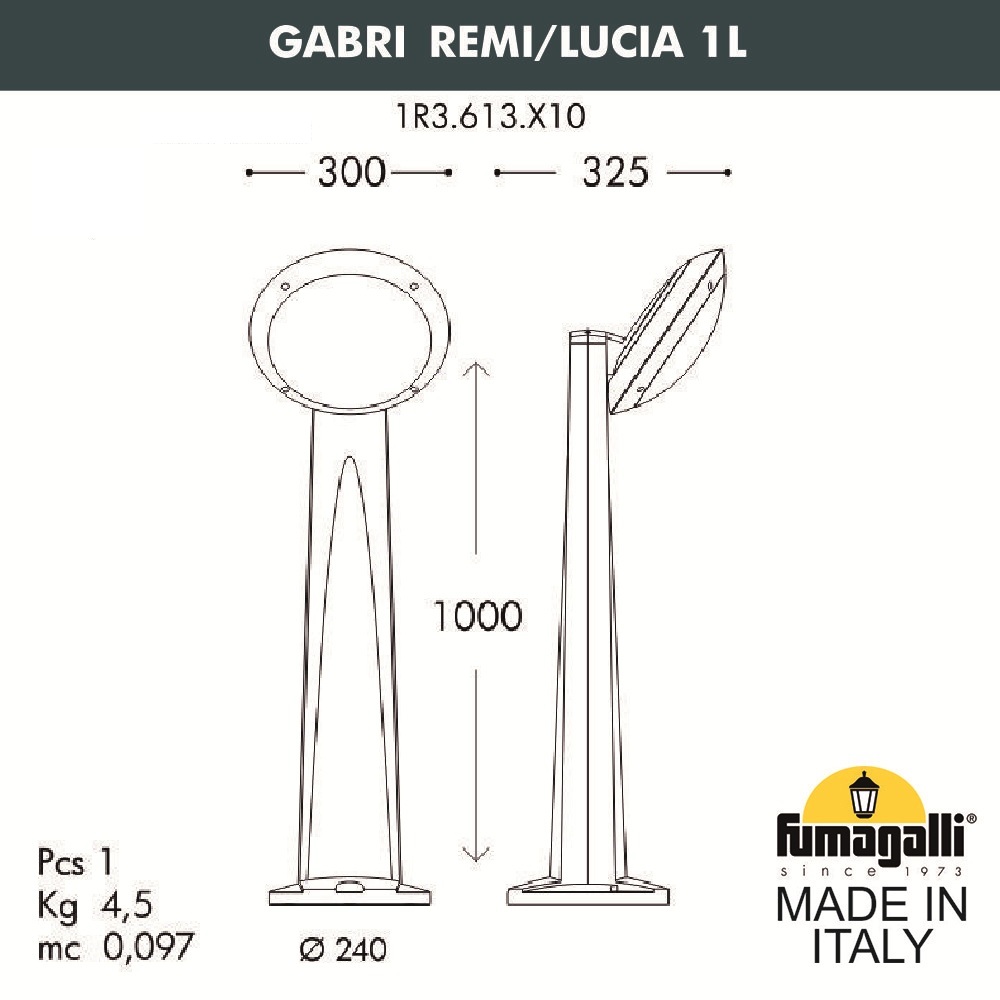 Уличный светильник Gabri Remi Lucia 1R3.613.X10.LYE27 Fumagalli
