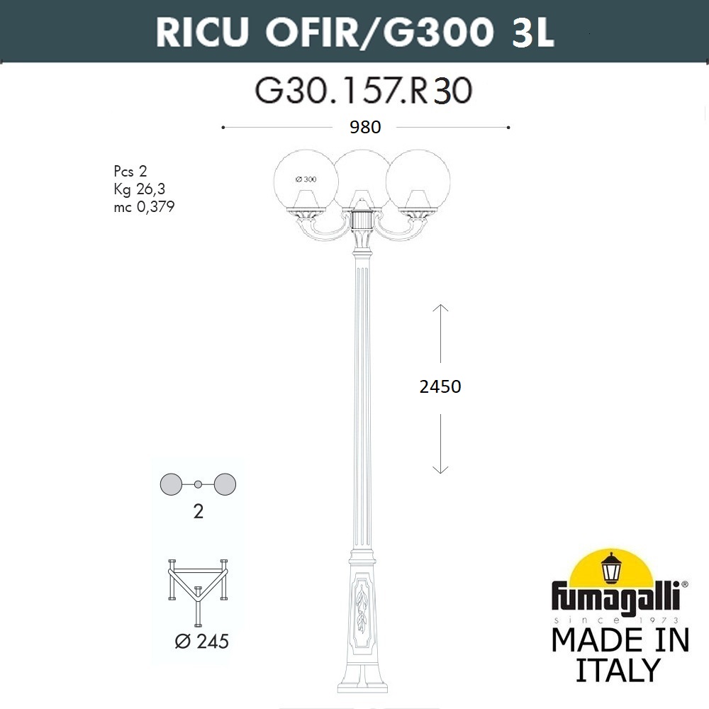 Уличный фонарь Ricu Ofir Globe 300 G30.157.R30.AYE27 Fumagalli